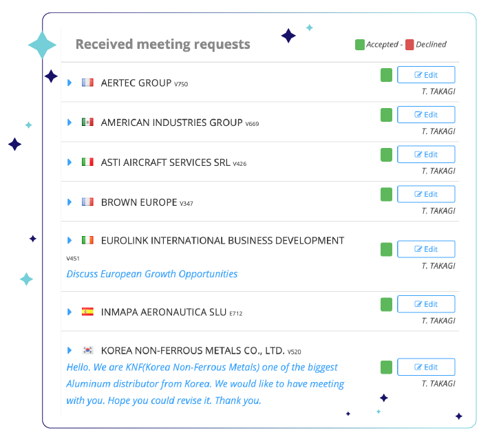 Envoyez des demandes de rendez-vous aux entités commerciales les plus prometteuses – soyez plus proactif pour utiliser au mieux votre temps pendant les 2 derniers jours de l’événement.